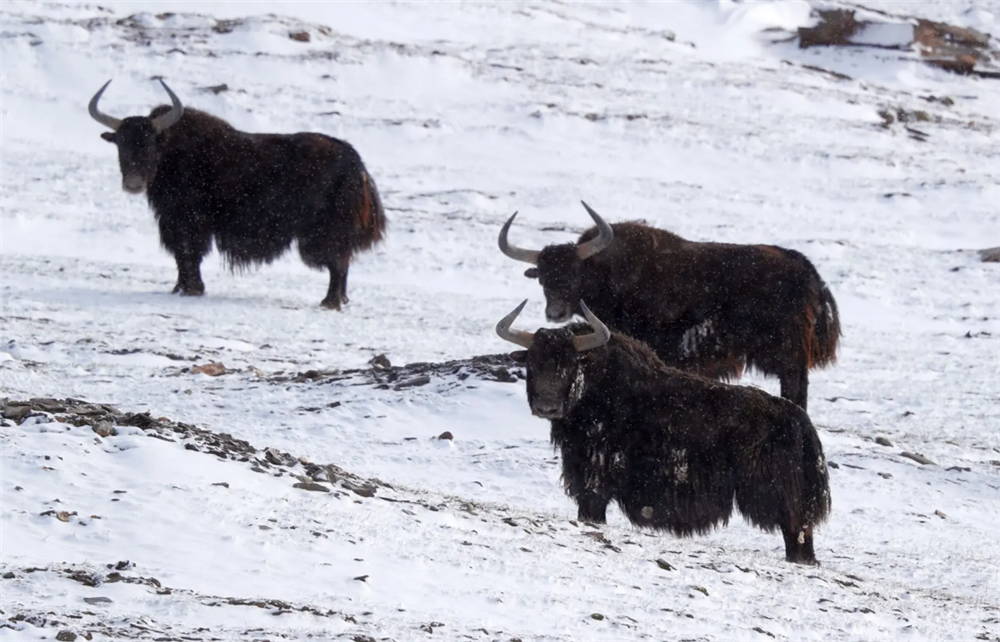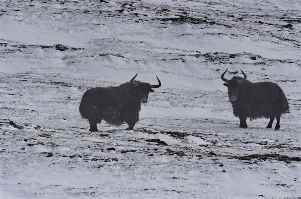 野牦牛力量相当,双方都有着象征“牛魔王”的牛角,但公牛的角要比母牛的大,所以很快就占了上风。当其他的野牦牛开始转移阵地,走向远处觅食时,这2头野牦牛才停止争斗。