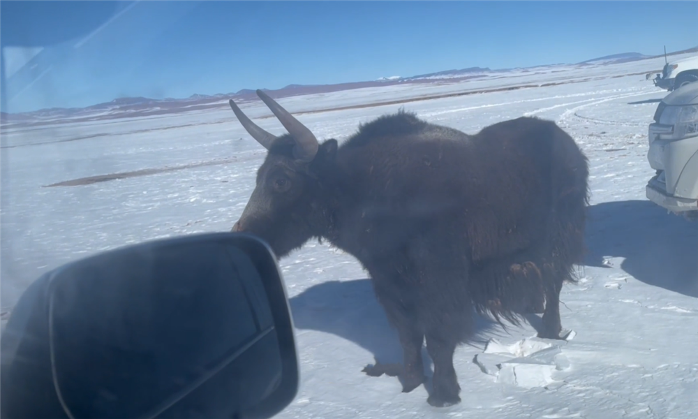 大家都知道,野牦牛发起脾气来,能把汽车顶翻了!还曾有野牦牛见到汽车,就追上去,想冲击汽车呢。但现在,母野牦牛却要借助汽车躲避,它终于可以喘口气了。