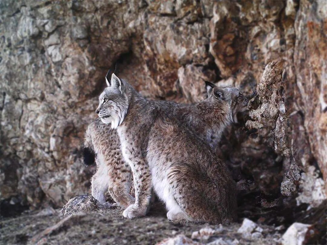 新疆。阿尔泰山拍摄到“狼猫”一家三口:2只幼崽一前一后在山间行走,很快,母“狼猫”出现在镜头中,最后它们走进了山林深处;博州艾比湖保护区里,1只 “狼猫”被野狗追赶,情急之下只好爬上了树,一点威风都没了。