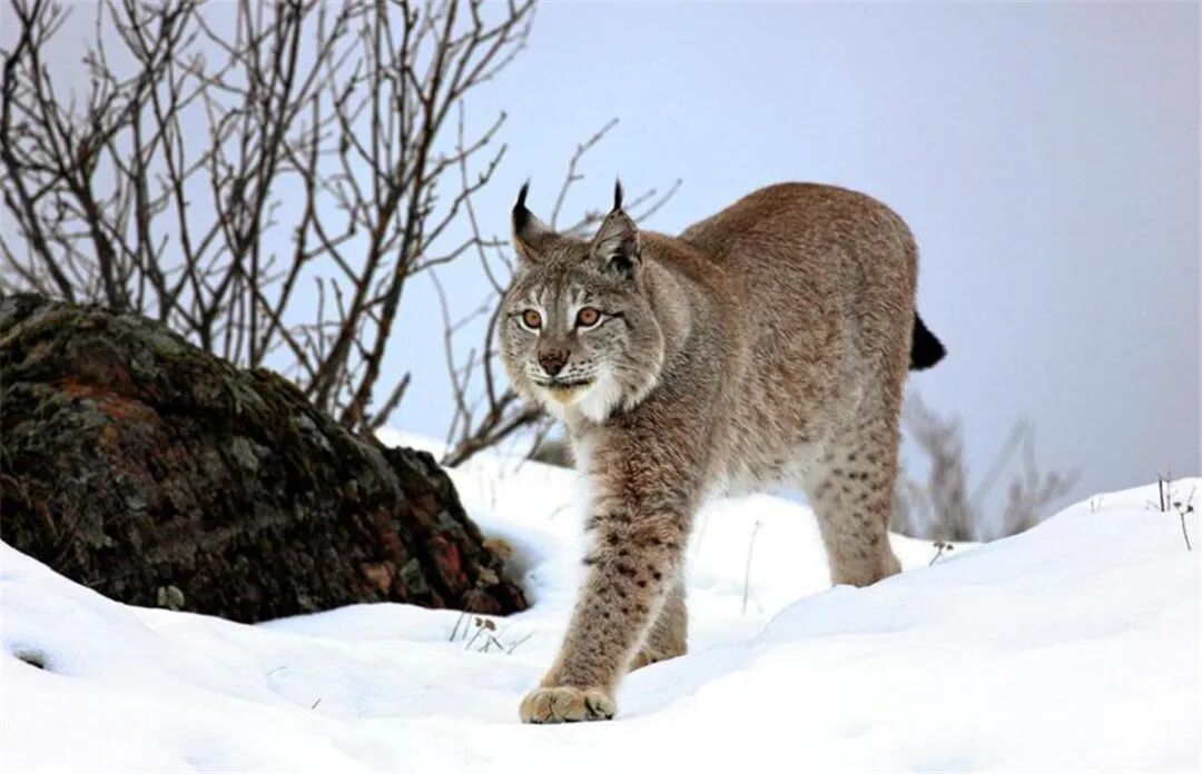 02腿长短尾,耳尖一簇长长的天线,宽大的脚掌,在雪地来去自由