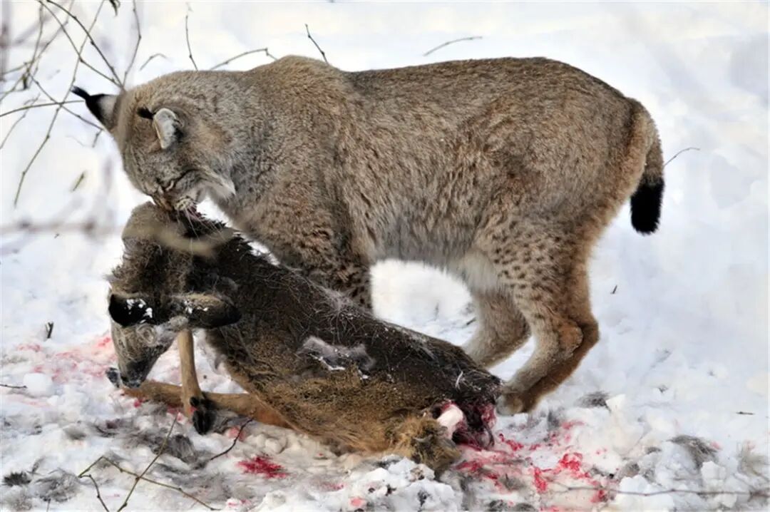不过,只要有狍子分布,狍子就会成为狼猫的主要食物。研究者观察发现,在西伯利亚,狼猫每半个月就会捕杀一只赤狐,平均一年捕杀23只赤狐。捕杀一般发生在每年的夏季和秋季,这时赤狐幼崽的数量比较多,而且咬死便遗弃,这是要斩草除根呀。