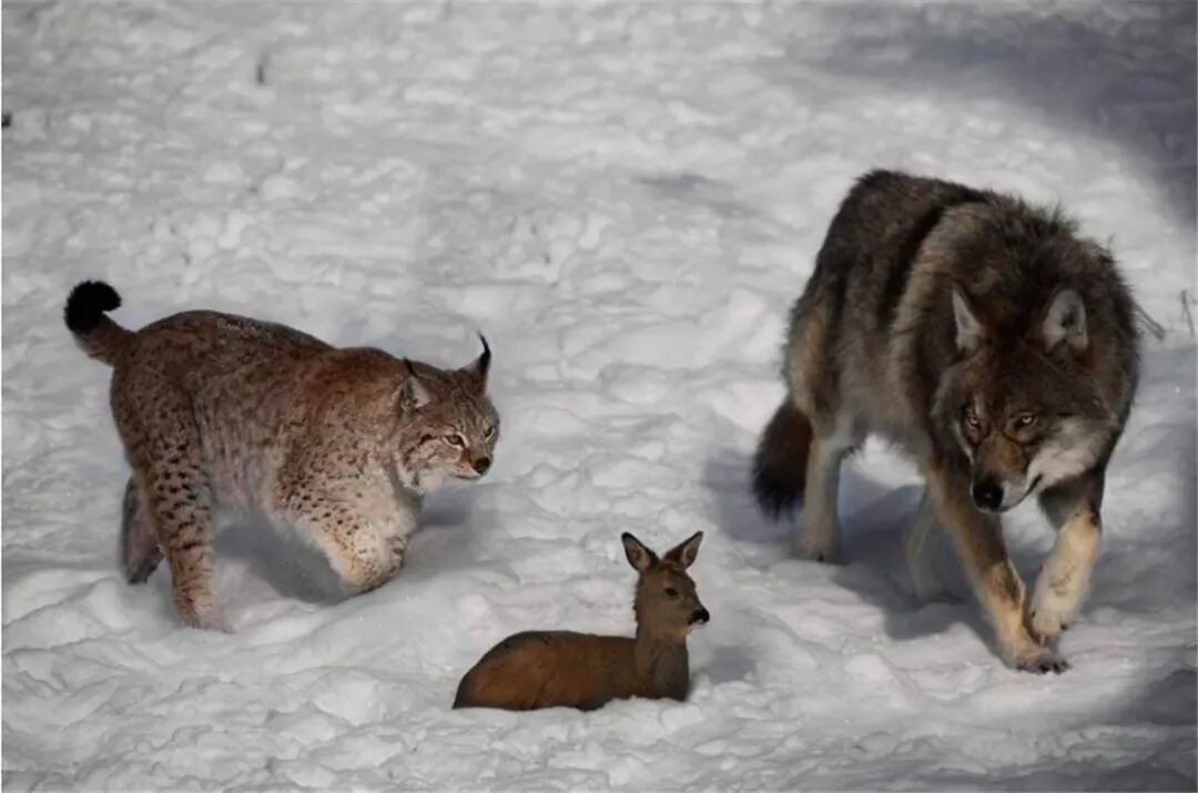 一份调查显示,在迪纳拉山脉,狼猫的猎物有27%会被棕熊抢走的。仅一个冬季,狼猫捕杀的11只有蹄动物中,就有3只被棕熊吃了。哎!摊上这么个贪婪又不讲理的邻居,狼猫也没办法,只能自认倒霉了。狼猫对棕熊的策略就是六个字:惹不起,躲得起。