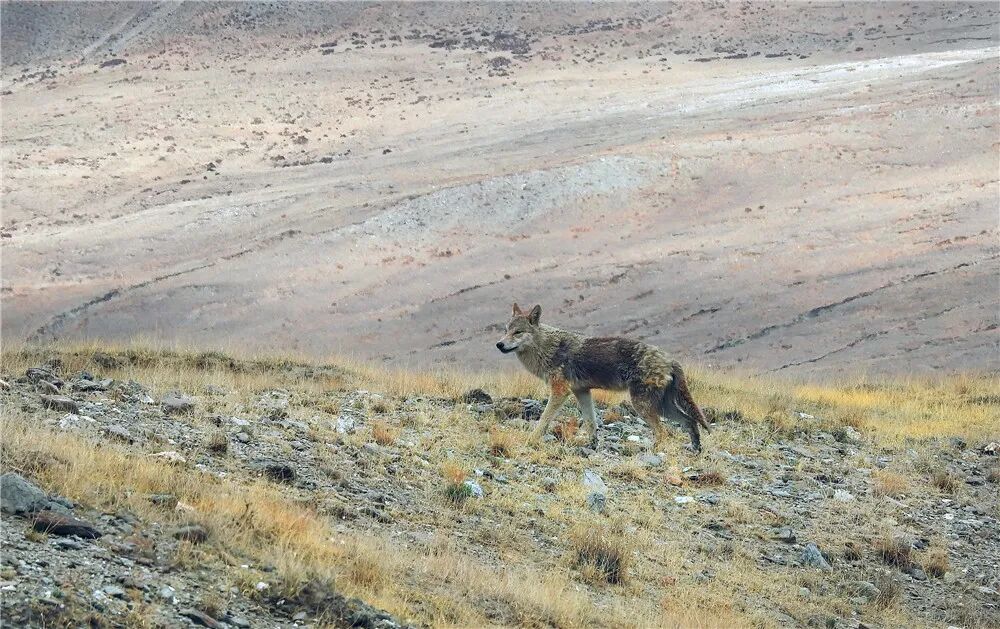 也许是迟迟没有发现破绽、没有找到下手的机会,狼徘徊了一阵子之后,悄然离去。不知道会不会去叫同伴来围攻藏羚羊?