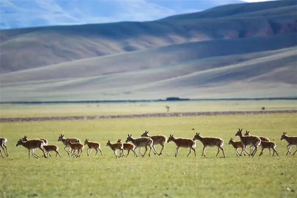 母藏羚羊带着幼崽,成群结队走在回家的路上。小小的藏羚羊对四周充满好奇,乖巧地跟在母亲身边,有时漫步,有时奔跑,机灵可爱。