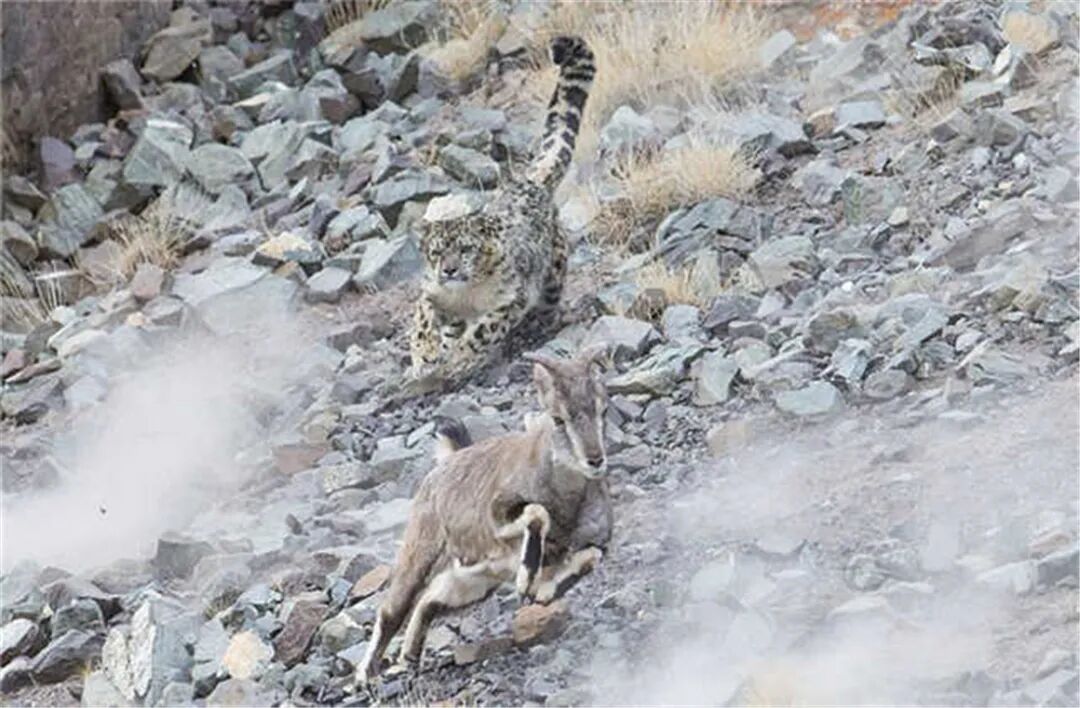 一周没有吃食物,雪豹好不容易捕到1只岩羊