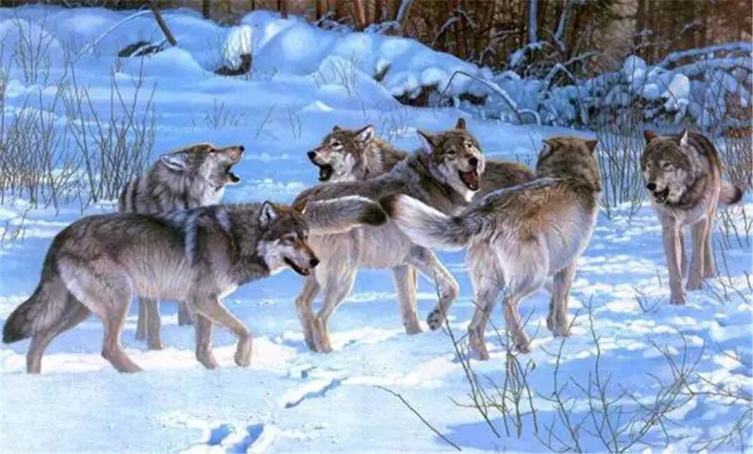 在雪地里,这6只狼喘着白气,眼中流露出十分凶残的目光,一起朝雪豹走了过来,一边走还一边在密谋着什么计策。也许,它们这次不仅要抢了雪豹的猎物,还打算要了它的命。