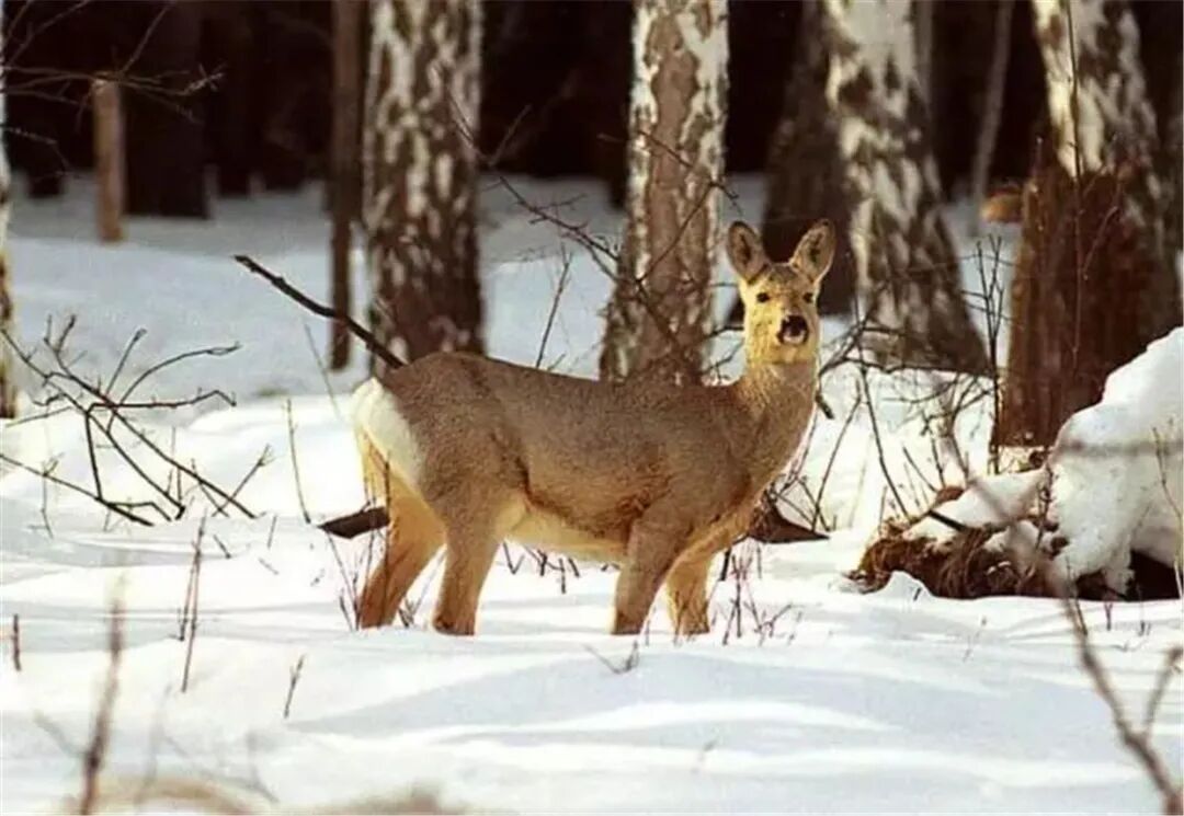 这次虽然没有水塘,但雪表层结了冰,狍子在冰层上快跑,不仅容易跌倒,而且蹄子踏入冰壳,腿会被擦伤。这个时候,正好是捕食狍子的大好时机。