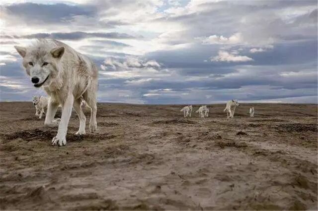 北极狼又叫白狼,生活在北极地区,以麝牛、野兔与旅鼠为食物,通常都是二三十匹狼组成一个大家族。白狼有很强的团队观念,经常都是团队合作捕食,然后一起分吃猎物。