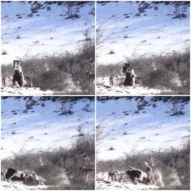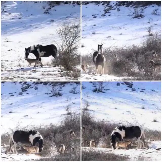 没想到这匹蒙古马竟然这么狂妄,看也没看草原狼一眼,该干啥还是干啥,但眼睛总是朝小马驹逃走的方向看。这群草原狼彻底懵了,这马既不逃跑,也不上前用它那让狼忌惮的蹄子来踢它们。