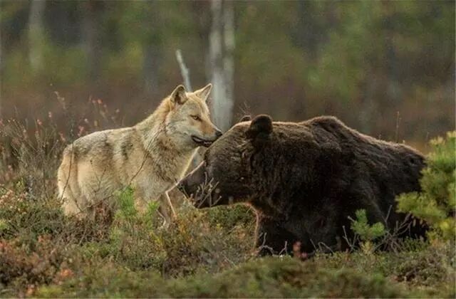 你也许还不知道,在拉普兰北部地区,发生了一件非常奇怪而且十分罕见的事情:据《赫尔辛基新闻报》报道,一头公熊和一匹母狼经常在这里约会,还成了朋友,产生了“爱情”。这种跨物种的爱实在是让科学家费解,让文艺小年轻羡慕嫉妒恨。