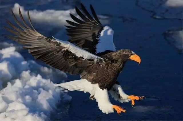 不仅速度快,金雕还可以连续飞行2-4小时,紧急情况下,连续飞6-8小时也没问题,最有意思的是,还能在空中紧急“刹车”,煽动几下翅膀就可以停下来,迅速调整方向。这还不算,还能空中表演杂技——翻转身体,长时间不煽动翅膀在空中盘旋,真是个名副其实的飞行健将。