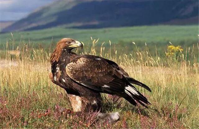 金雕是鸟类中顶级捕食者,在金雕大哥的食谱中,有30-80种美食。炯炯有神的视力、锋利的喙和爪、快得惊人的速度与巨大的翅膀,是金雕强有力的捕杀猎物的利器。
