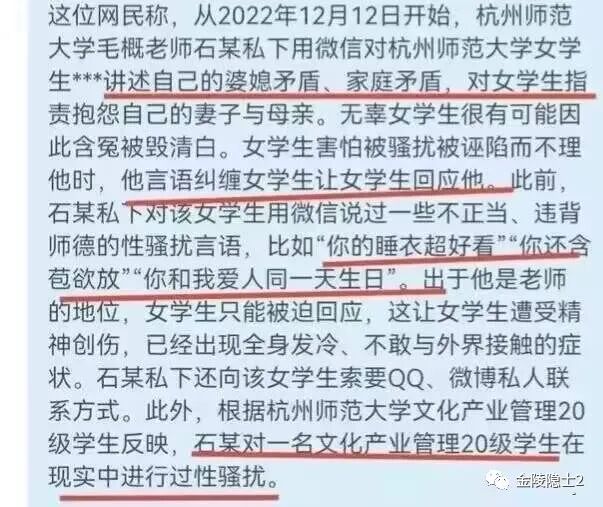还有杭州某大学教授,骚扰女学生。