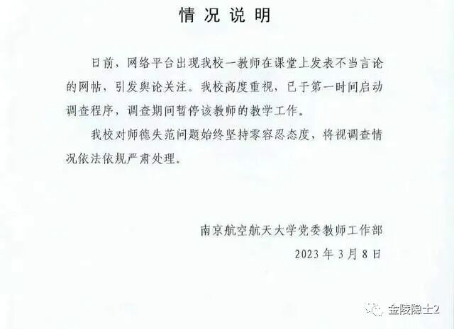 南航作为国防七子,在南京的口碑是非常不错的。当然了,一个“叫兽”的言论不能代表一个学校,但学校有此思想的“叫兽”却未察觉,是不是也说明了一些问题呢?