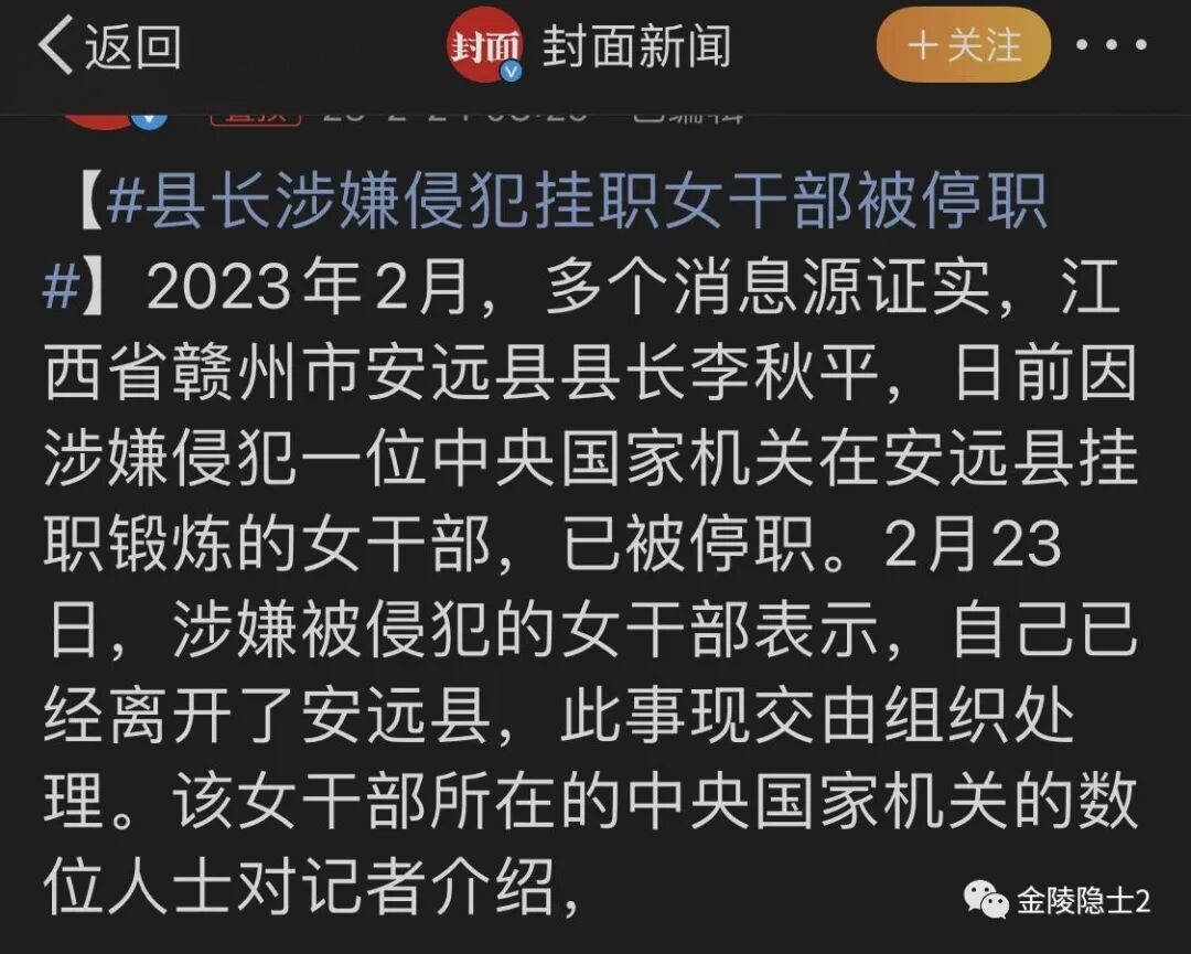 80后的安远县长,不想着造福一方、不想着带领家乡高质量发展,却涉嫌侵犯中央国家机关在安远县挂职锻炼的女干部,这胆子可真不小。