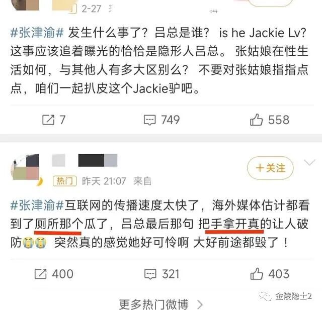 吕总和张津瑜酒店里的视频已经过去几个月了,期间也就扬州戴璐风头盖过一阵,其他的陈枢等跟张的瓜,不是一个级别的。毕竟单就颜值这一点,张就遥遥领先了。