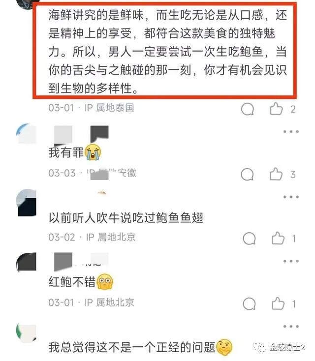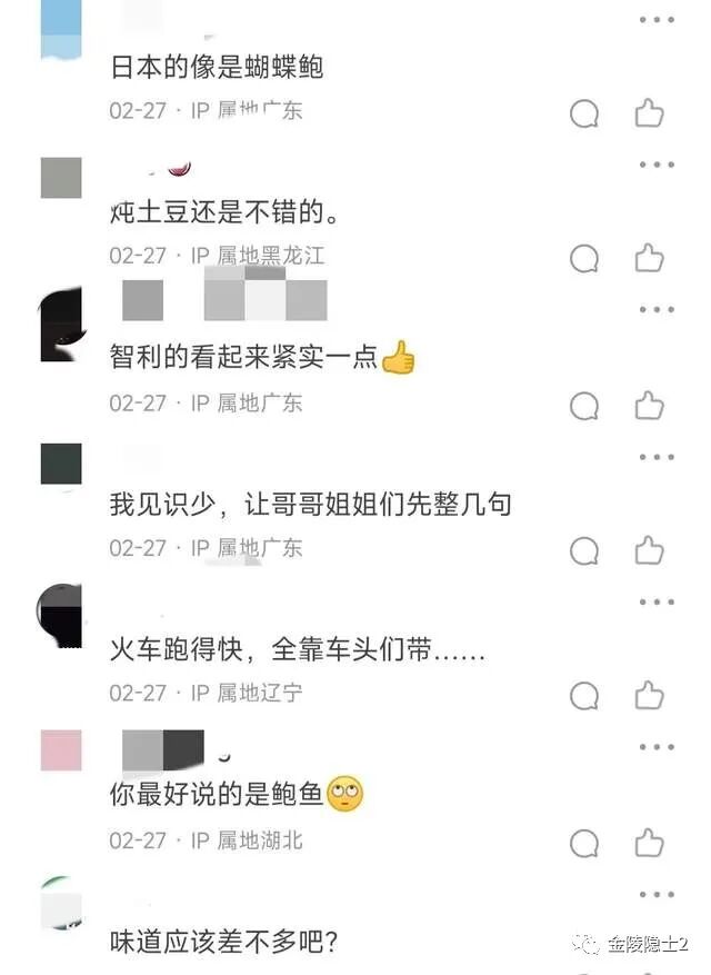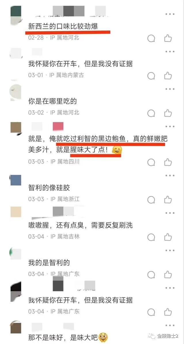 还有老司机评价鲍鱼的口感,产自智利的口感最好。