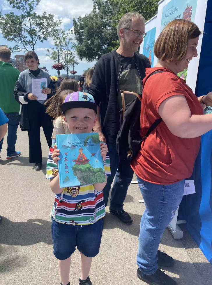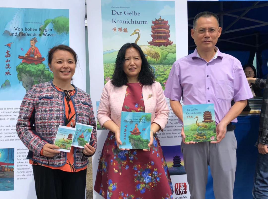 旅居德国的武汉人周俊特意创作了德文版《黄鹤楼童话故事》和《知音故事》绘本,以及印有武汉童话故事的明信片,在杜伊斯堡一年一度的龙舟节盛会上赠送给当地市民。