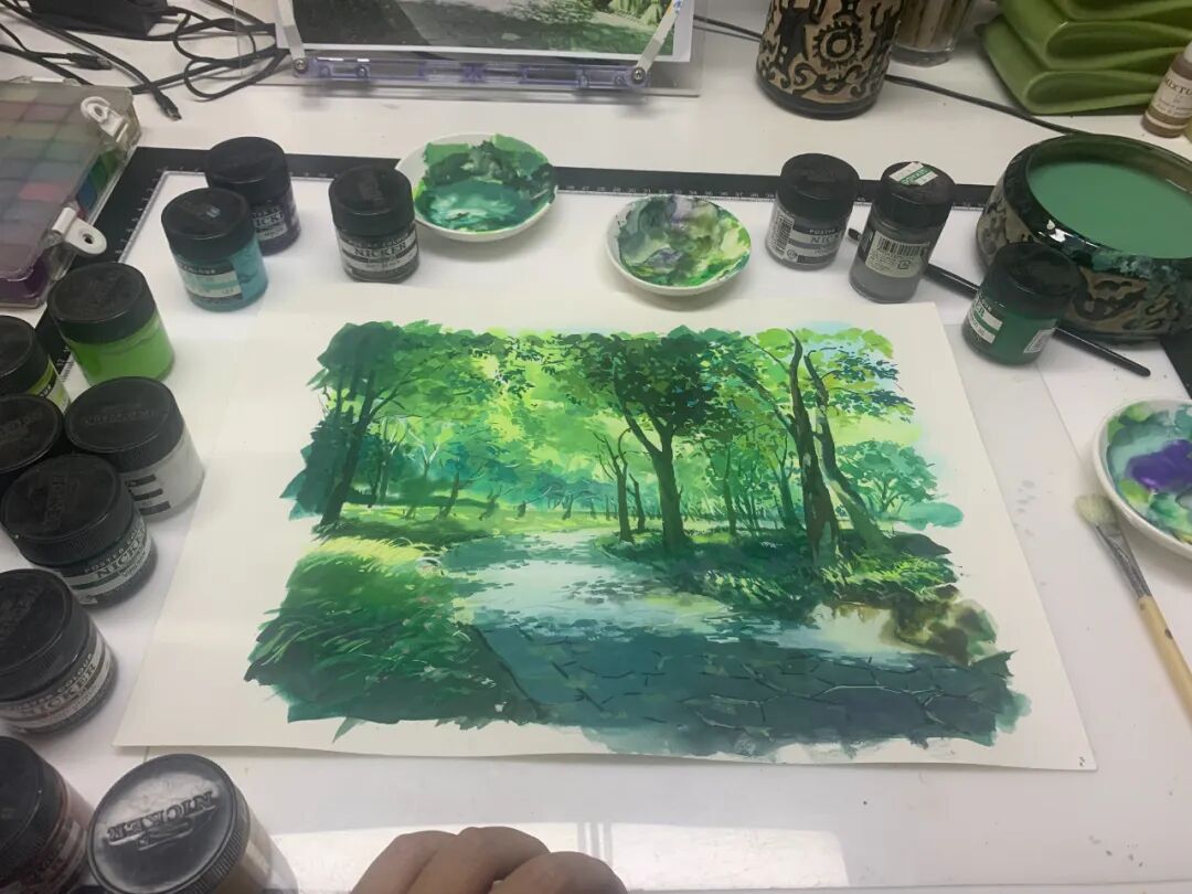 因为同是不透明水彩领域的探索者,何正礼有了不少和国际水彩同行交流的机会,吉卜力工作室的背景画师会和他进行绘画交流。