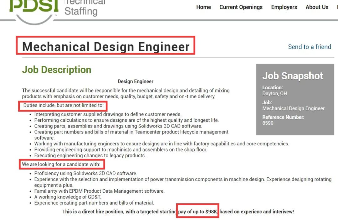 由上可知,岗位职责寥寥无几,并且任职要求也很低,而SolidWorks和GD&T是机械工程师必备技能,总来来看,国内随便一个机械工程师都能胜任。