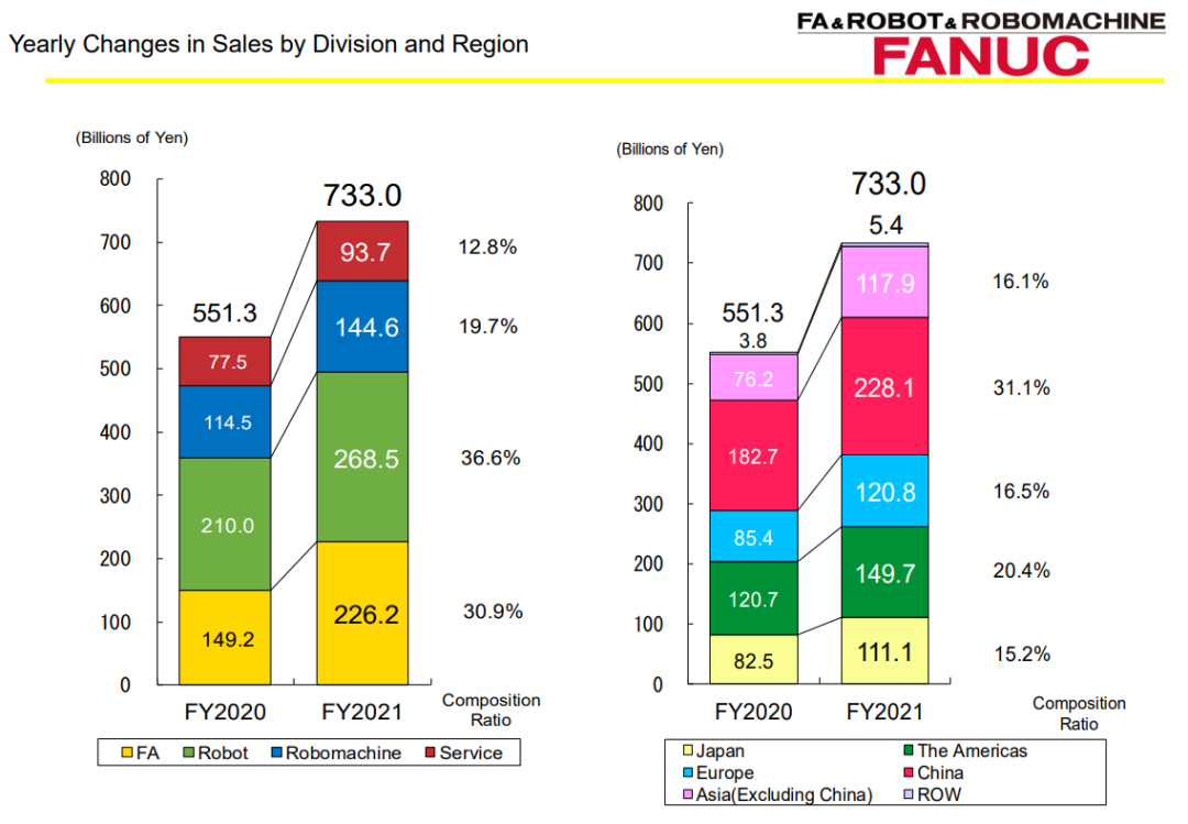 仔细观察这幅图,日本FANUC划分地区的时候,是把中国单独拿出来了,中国和亚洲(除中国之外)是并排的,由此可见,中国对FANUC的营收有多重要。