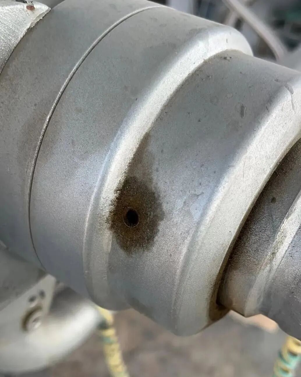 现场我仔细看了一下我们的设备,注油嘴不光没有防尘帽,甚至有的地方连注油嘴都没加,比如下图所示的旋转关节,趁甲方没注意,我偷偷把旋转关节上的注油孔给移到里面去了。
