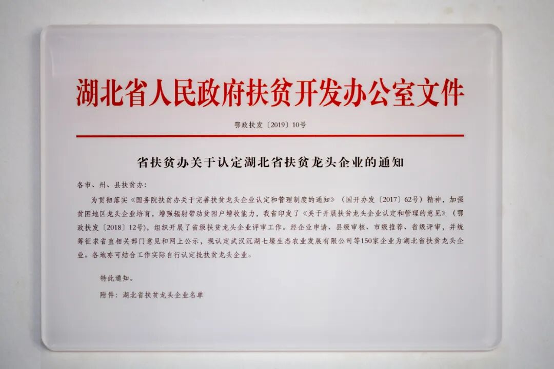 2019年,未来家园入选湖北省扶贫开发办公室“湖北省扶贫龙头企业”名单;
