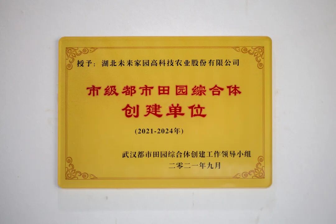 2021年9月,未来家园荣获武汉都市田园综合体创建工作领导小组授予的“市级都市田园综合体创建单位”;