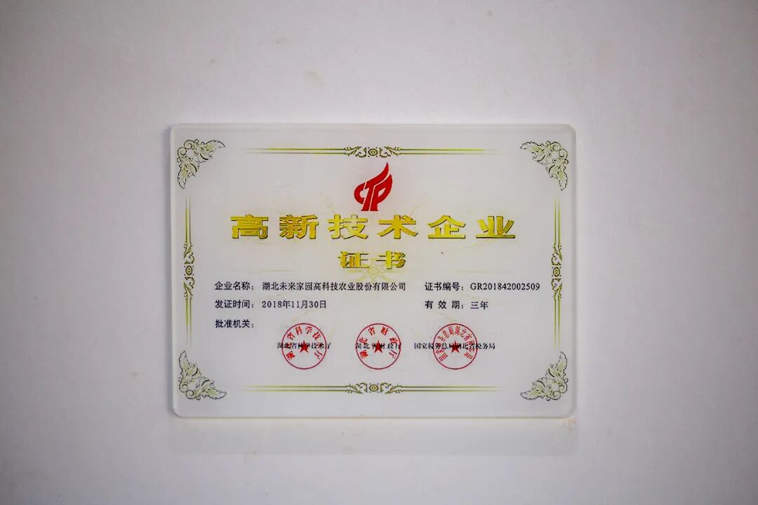 2018年11月,未来家园荣获湖北省科学技术厅、湖北省财政厅、国家税务总局湖北省税务局颁发“高新技术企业证书”;