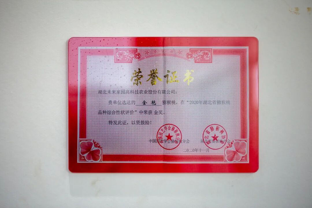 2020年11月,未来家园金艳猕猴桃荣获中国园艺协会猕猴桃分会、湖北省猕猴桃协会颁发的“2020年湖北省猕猴桃品种综合性评价金奖”;