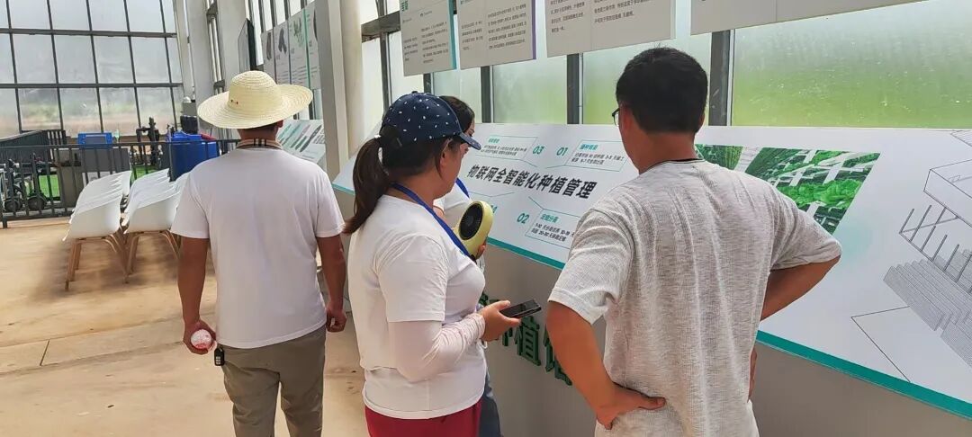 在2750㎡的水培能量蔬菜馆,乡村振兴产业带头人们现场参观了未来家园运用物联网技术进行可视化智能监护,实时环境监测预警、环境自动控制、原始视频监控、农事记录溯源等,随时随地呵护能量蔬菜的成长环境;