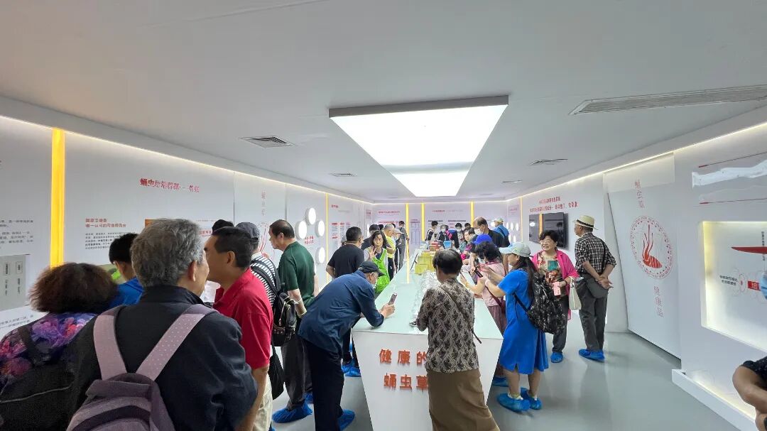 第四站,蛹虫草培育馆。作为国内最大、最专业的蛹虫草培育基地,采用最高尖的培育技术——自研活体接种技术及专利生产设备,日产成品蛹虫草800公斤,纷纷勾起了大家好奇心。