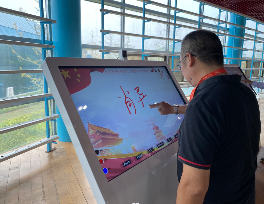 参观完党建馆,在尹董的亲切带领下,大家纷纷来到智能一体机前打卡留下签名。
