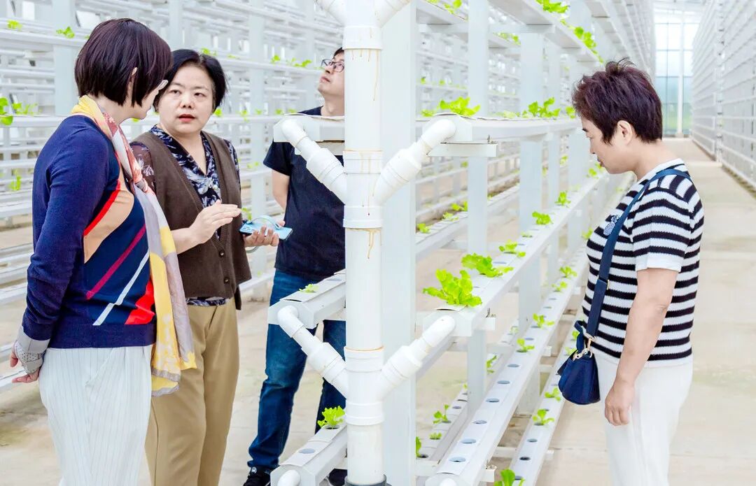 在水培能量蔬菜种植馆,陈瑛女士仔细地向大家阐述了水培菜的栽培技术,通过无土栽培、物联网和水肥一体化系统,能够实现种植+数据等多个环节的精准控制,有效管理水培蔬菜生产过程中的种植、采收和产量预测等。