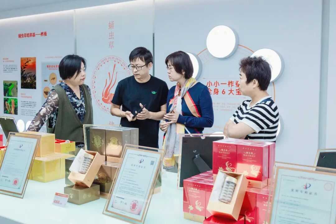 在陈瑛女士的带领下,王院长一行依次参观了未来家园产业融合馆、立体水培能量蔬菜种植馆、蛹虫草培育馆等。