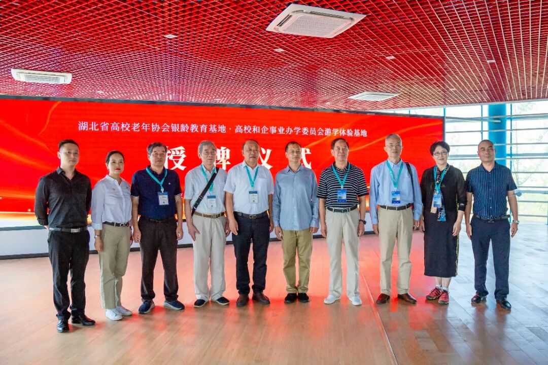 9月27日,湖北省高校老年协会会长丁振国、湖北省高校老年协会副会长朱正亮与湖北省老年大学协会副会长张诗荣等一行领导莅临未来家园,并与未来家园董事长尹维坊、武汉数字化老年大学校长段艳珍等人一起,进行了简单而隆重的《湖北省高校老年协会银龄教育基地》、《湖北省老年大学协会高校和企事业办学委员会游学体验基地》的双项荣誉揭牌仪式。