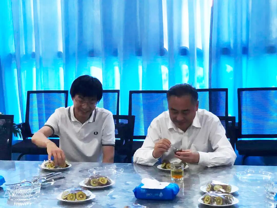 结束实地考察后,调研组一行来到多功能会议室进行亲切而友好的座谈。在座谈会上领导们品尝了金汤蛹虫草茶和新鲜采摘的猕猴桃。