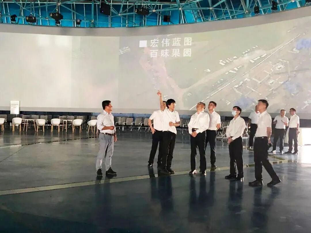 随后,调研组一行来到未来家园科技馆,现场感受来自360°巨幅全息投影纱幕和800平方的液晶显示屏的视觉冲击魅力。尹总介绍到,未来家园科技馆所构成的成像介质能够提供一种完美的成像视觉反应,在大型赛事活动、文艺演出、会议等展示中,能够带来震撼的效果。