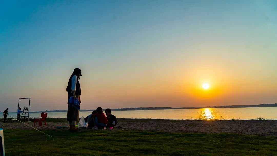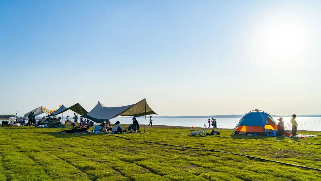 大人们也可以自在惬意的放松。扎上一顶天幕,铺一块野餐垫,享受江风秋色,观赏落日晚霞,与大自然来一次亲密接触。