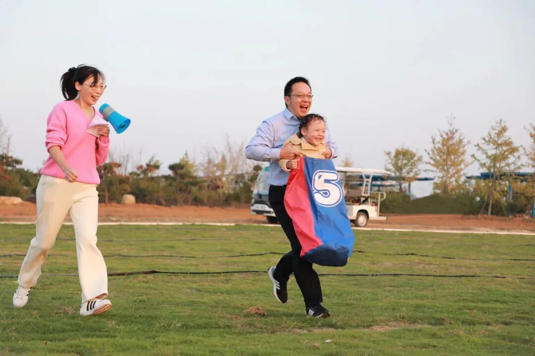 瞧!孩子们嬉笑颜开,在亲子互动游戏中大显身手。