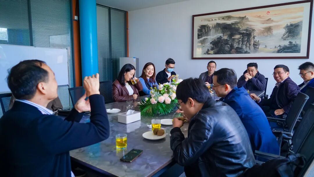 实地参观结束后,华农专家团一行来到了未来家园多功能会议室进行交流,现场品尝未来家园特色产品:有机猕猴桃与金汤蛹虫草茶,并对园区三产融合的发展战略与规划点赞。