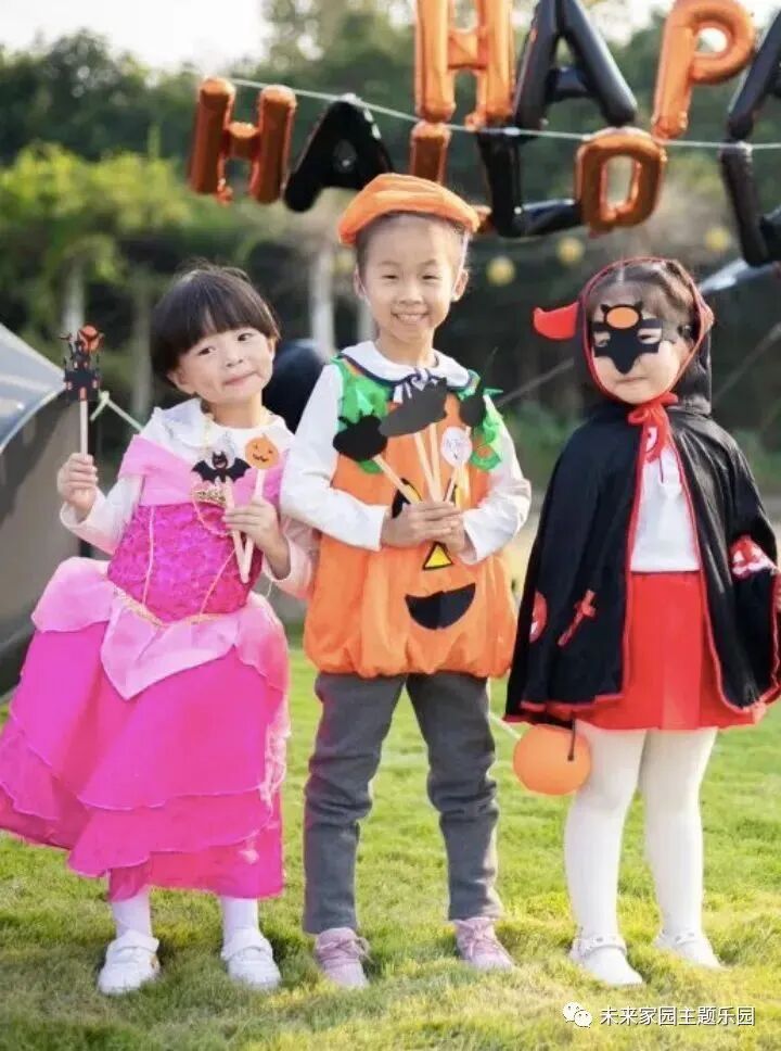 孩子们在万圣节的氛围中嬉闹、奔跑