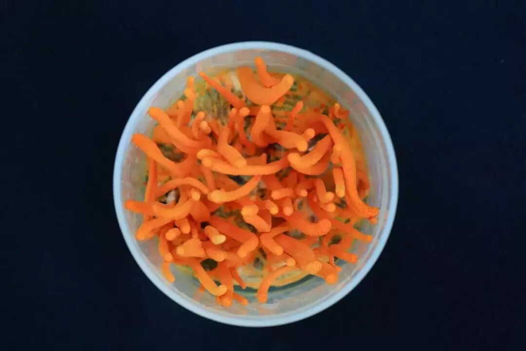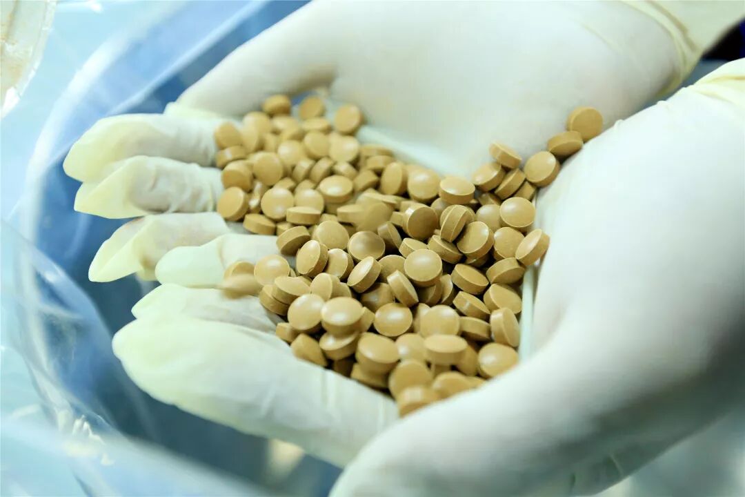 4号馆深加工车间总面积4800平方,GMP制药车间标准打造,建有蛹虫草片剂加工生产线、软胶囊生产线、硬胶囊生产线及口服液瓶装线。