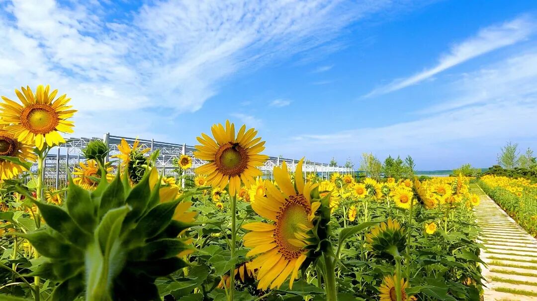 穿梭在这片花海中,一簇簇金黄花朵,包裹着饱满的花盘,用一张张灿烂的笑脸,热情洋溢地迎接着八方来客。