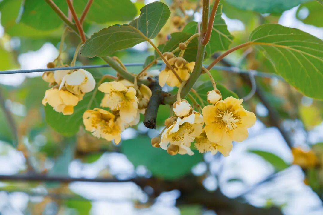 阳光和煦微风吹拂,此刻也是猕猴桃开花的时节。花瓣宛如心房,花蕊温柔绽放,花香扑鼻的味道,让人看到花之美的同时,也看到因硕果累累而产业兴旺之美!