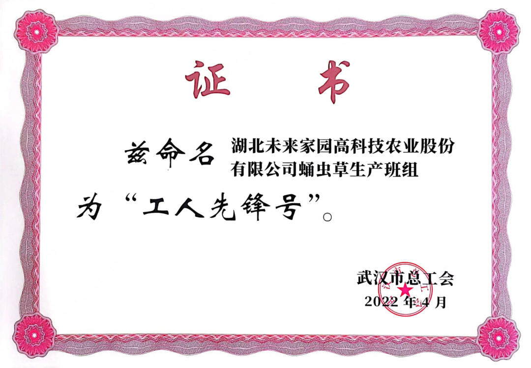 同时,未来家园蛹虫草生产班组喜获“2021年武汉市劳动生产先进班组”、“武汉市工人先锋号”荣誉称号,并获得市总工会的现场表彰。