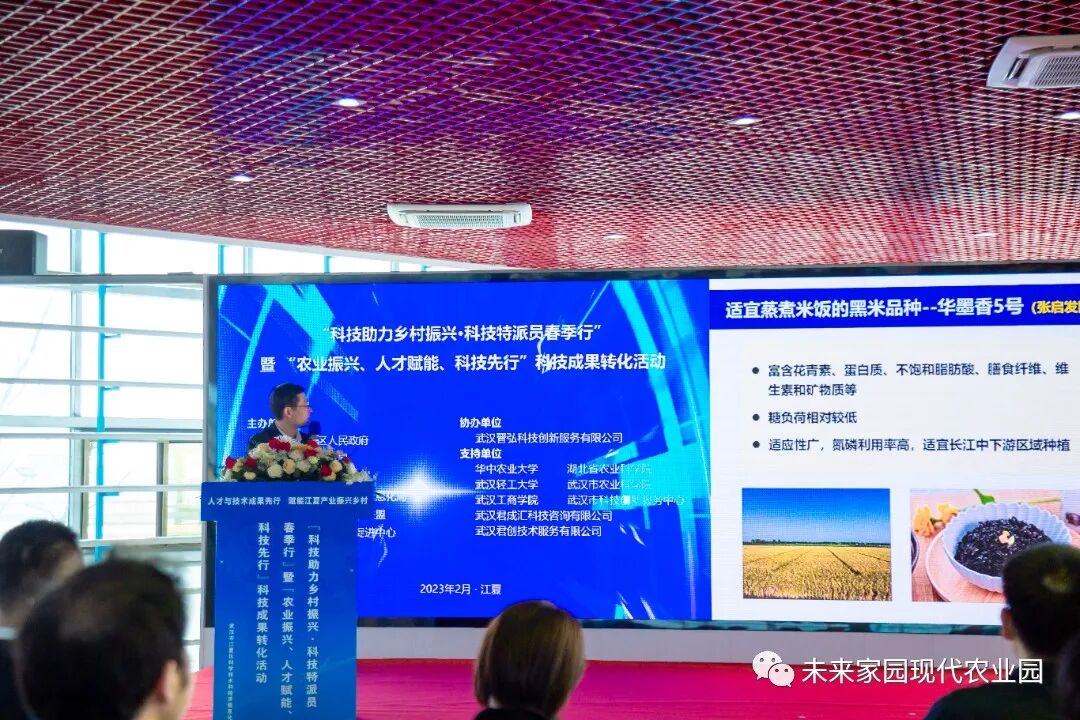 近日,由武汉市江夏区人民政府、武汉市科学技术局主办,武汉市江夏区科学技术和经济信息化局、武汉市科技特派员创新联盟、武汉市科技成果转化促进中心承办的《“科技助力乡村振兴,科技特派员春季行”暨“农业振兴、人才赋能、科技先行”科技成果转化活动》,在未来家园乡村振兴馆隆重举行。