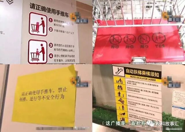 超市解释说正确使用购物车的步骤和提醒都清楚地写在了购物车的底层。在手推车上面的小座位上,也有相关的插图。当来到三楼的自动扶梯入口时,可以看到贴在墙上的纸,上面写着:“请正确使用手推车,不要向后推、逆行和其他不安全的行为。”超市每隔5分钟就会有相关的循环广播提示。超市认为这是曹女士监管不力造成的。