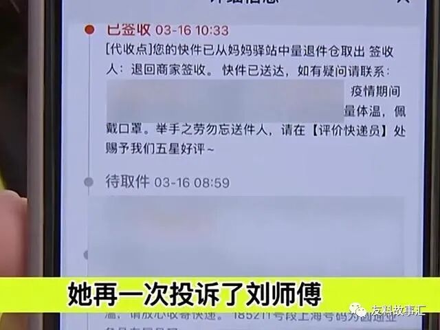 张女士说,因为快递被多次退回,半年来他已经投诉刘师傅不下五次,为了避免和刘师傅接触,自己还将收件人改成了弟弟的。