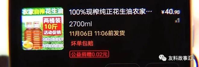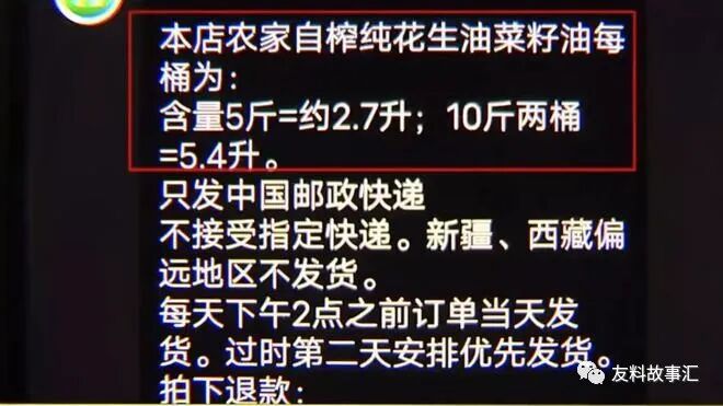 姜女士在某宝上买了一罐花生油,商品上注明姜女士花了40.9元购买了2700ml的花生油,但收到货后,用电子秤称了一下,却发现差了将近1斤,找到店家后,对方却回复说是罐装偏差。